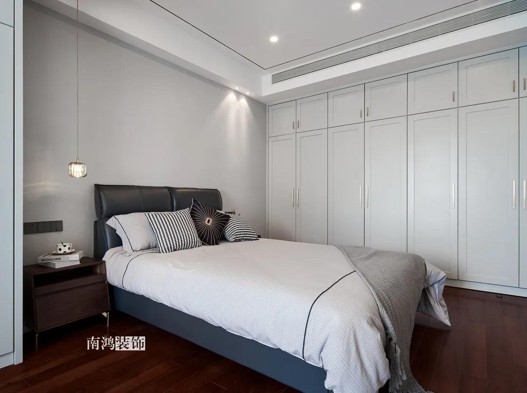 業主是一對年齡45歲左右的夫妻,事業穩定,家庭幸福。夫妻二人熱衷各類美食料理,所以對家里廚房的設計更加重視。 總體來看,戶型面積很大,三室兩廳的格局留給了公區域相當寬敞的可使用空間。設計與選材上秉承現代風格的原則,強調理性而寧靜的室內氛圍,穩重的木料與明朗的石材相配,實現物質與精神的雙重安放。 1、正門對廚房,以豎條木格柵做隔斷。 2、客餐廳兩塊區域中間做一個書吧用以分隔空間,增加層次性。 3、做開放式廚房,餐桌增添島臺,提升空間利用率與家人互動性。 4、北陽臺和女兒房打通,擴充女兒房的使用面積。 玄關 ENTRANCE 入戶玄關以深色的木格柵阻隔視線,既是風水上的考慮,又很好保護了室內隱私。地面通鋪白色瓷磚串聯內外,關于家的第一印象便在此構建。 細木條元素自帶美感,光影的變幻交錯間,涌動出不凡的藝術張力。 客廳 LIVING ROOM 低飽和度色彩與明朗的線條,傳達著主人對簡約品質生活的追求和向往。全屋頂面統一做無主燈裝飾,嵌入6毫米黑色金屬條,極細的線條感透出設計的巧思與靈動之美。 空間以簡潔敞亮的硬裝基礎,搭配素凈的顏色與舒適的軟裝,深色木質元素在其間跳躍點綴著,中和剛冷的石材光澤。 電視機嵌入大理石背景,墻面紋理與地呼應,下開收納格取代傳統電視柜的位置,立面干凈,層次更在一深一淺中凸顯。 視線無論由無主燈頂面還是地面延展,均是順暢無比,大戶型的氣派一覽無余。 客餐之間由小書吧自然過渡,可以當作一個開放式的書房使用,讀書、辦公、品茶、娛樂等多重功能恣意交互,單一空間由此衍生出諸多使用情境。 餐廳 DINING ROOM 餐廳與門廳相鄰,開放式餐廚設計滿足主人的所有美好想象。餐桌的胡桃木色與島臺、廚房的淺色形成對比,雅致的古韻與鋒利的現代感交匯,成為這個家個性的一面展示。 清晰筆直的黑白線條拉伸空間縱深感的同時,也讓客廳和餐廚的視野更顯朗闊。 溫潤的胡桃木紋理典雅大方,空間的詩意氛圍在簡約的線條層次中被有力烘托出來。 廚房 KITCHEN 既可以擴充廚房操作臺面,又能當吧臺使用的島臺,和餐桌結合在一起,大大增加了使用頻率,搭配上款式輕盈的吧臺凳,毫無疑問是餐廚區的顏值與實力擔當。 開放式布局將廚房和餐廳融為一體,潔白柜體把嵌入式電器隱含其中,寬大的臺面足以滿足日常烹飪需求,環形的動線則可以讓人穿梭其中行走自如。 臥室 BEDROOM 主臥背景墻以灰色墻布和木飾面結合,細膩紋理展現有機的溫暖、純凈,燈光被有序在墻頂面安置,讓人倍感安神,又不失高雅格調。 床頭壁燈的瑩瑩微光,帶來夜的凝思。床尾放一把小羊羔絨椅,圓潤線條惹人喜愛。光影之間,居室氣質自顯。 寧靜灰是次臥的主導色,納入的陽臺讓室內采光更加充足,滿滿當當的柜體則將空間的收納力放大到極致。 陽臺被細心布置為休閑一角,為主人譜寫出愜意的生活橋段。 衛生間 BATHROOM 衛生間整體保持極簡的格調,黑白配色更顯潔凈,臺盆柜纖巧落地,視覺上倍感輕盈。