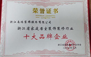 喜報!南鴻裝飾獲省裝飾行業(yè)十大品牌稱號!